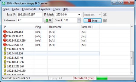 Mit dem Open-Source-Tool “Angry IP Scanner” scannen Sie schnell und einfach große IP-Bereiche. Die Bedienung des “Angry IP Scanner” ist sehr einfach gehalten: Zu Beginn legen Sie den zu scannenden IP-Adressenbereich fest und nach einem Klick wird der Vorgang gestartet. Neben der IP-Adresse liefert das Tool weitere Infos, etwa die Mac-Adresse und sucht auf Wunsch auch noch nach offenen Ports. Alle gefundenen Daten lassen sich zum Beispiel als TXT- oder CSV-Datei exportieren. Über Plug-ins lässt sich der Funktionsumfang des Programms zudem deutlich erweitern. “Angry IP Scanner” ist ein kleines und einfach zu bedienendes IP- und Portscanning-Tool. Dank vielfältiger Einstellungs- und Erweiterungsmöglichkeiten eignet es sich auch für fortgeschrittene Nutzer.